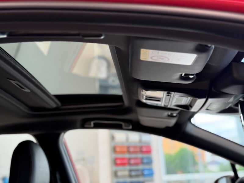 Ngay khi bước vào cabin, cảm giác đầu tiên là sự đơn giản nhưng không kém phần đẳng cấp. Chất liệu da lộn Ultrasuede được sử dụng rộng rãi trên ghế và các chi tiết nội thất, kết hợp các đường chỉ khâu màu đỏ tương phản, tạo nên phong cách trẻ trung và thể thao.