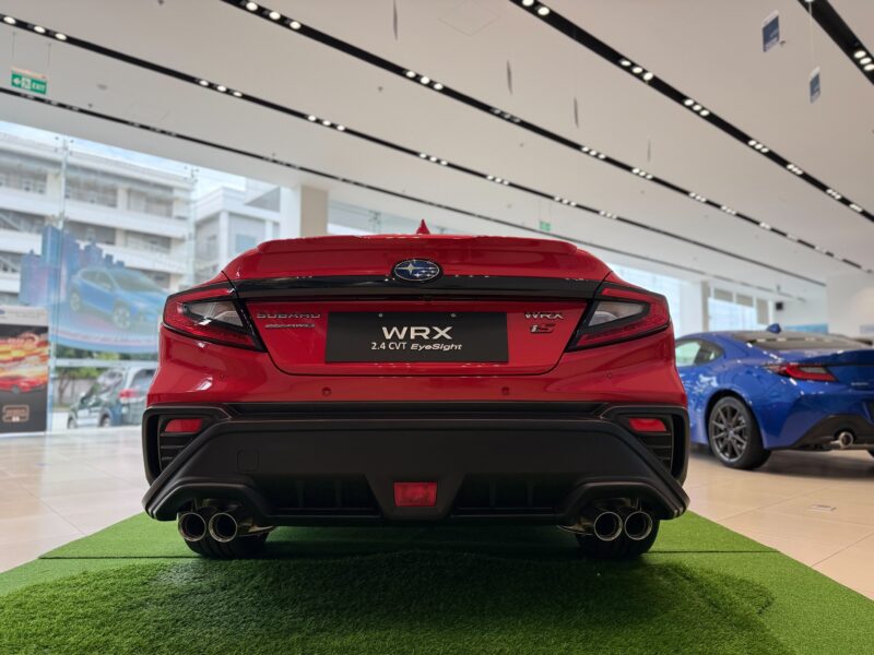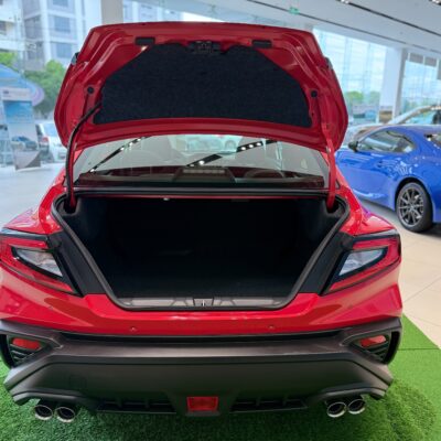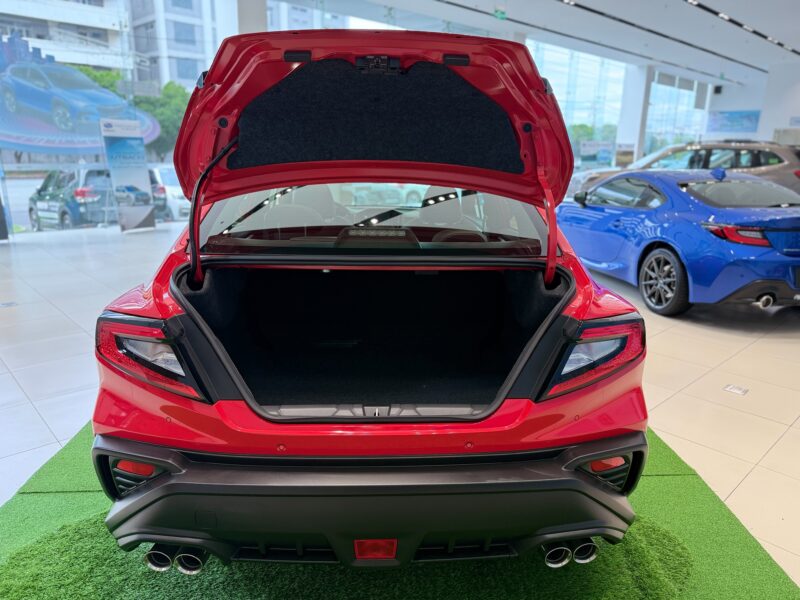 Phía sau xe nổi bật với thiết kế vuốt mui kiểu fastback, tạo cảm giác liền mạch từ nóc xe đến cốp sau. Đèn hậu LED hình chữ C góc cạnh được thiết kế tinh tế, tương tự các mẫu xe Honda Civic thế hệ trước nhưng hiện đại hơn. Điểm nhấn là cánh gió liền thân trên phiên bản tiêu chuẩn, không quá phô trương nhưng vẫn rất “chất”. Đặc biệt, cản sau được ốp dày và tích hợp ống xả kép, làm nổi bật hiệu suất mạnh mẽ của động cơ Boxer.